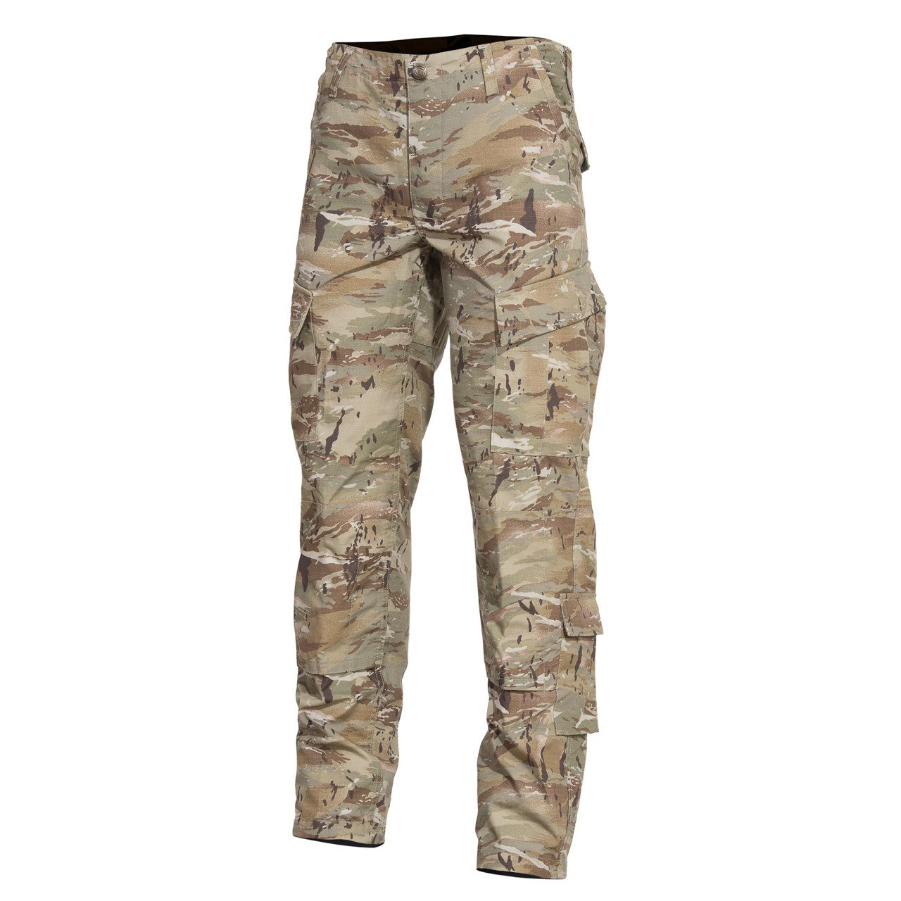 Pantaloni ACU croiți din țesătură Rip-Stop de înaltă densitate cu uscare rapidă, 65% poliester, 35% bumbac, 215 g/m2, durabili și potriviți pentru toate cele 4 anotimpuri, cusuți de trei ori în toate punctele de stres.