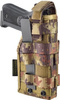 Holster/toc ambidextru pentru pistol, echipat cu sistem MOLLE. Poate fi atașat pe jachetă, platforme de picior sau alte echipamente compatibile cu sistemul Molle.