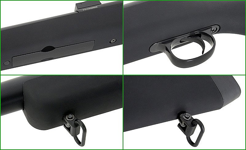 Stopul replicii este fabricat din material cauciucat de foarte bună calitate, țeava, încuietoarea și mecanismul de declanșare sunt fabricate din metal.