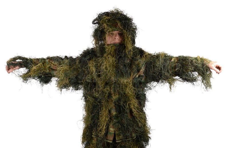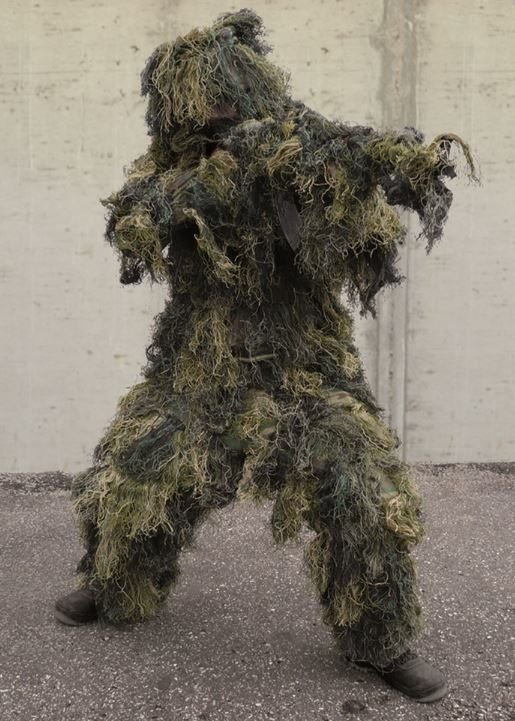 Costumul de camuflaj "Ghillie" este format din: pantaloni, o jachetă, o piesă pentru cap și un element de camuflaj suplimentar care poate fi folosit pentru a camufla arma.