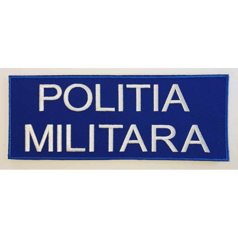 Emblema Politia Militara spate este o emblema brodata cu fir Madeira Polyneon 100% polyester. Sportul este realizat din tesatura albastra cu intaritura din material termocolant, in raportul 65/35% bumbac/polyester.Ecusonul poate fi aplicat prin coasere, cu velcro, arici sau prin aplicare termica. Datorita materialelor de cea mai buna calitate, este rezistent la soare, vant si ploaie fiind perfect pentru utilizarea in exterior.Dimensiunile pentru Emblema Politia Militara spatee, realizate cu mare atentie la detalii, sunt conforme cu reglementarile in viguare. Datorita calitatii materalulelor, realizarii precise si atentiei deosebite acordate pentru fiecare detaliu al emblemei, aceasta poate fi utilizata pe maneca echipamentului militar la parade si evenimente speciale, fiind o expresie a spiritului de echipa si respectului fata de camarazi.