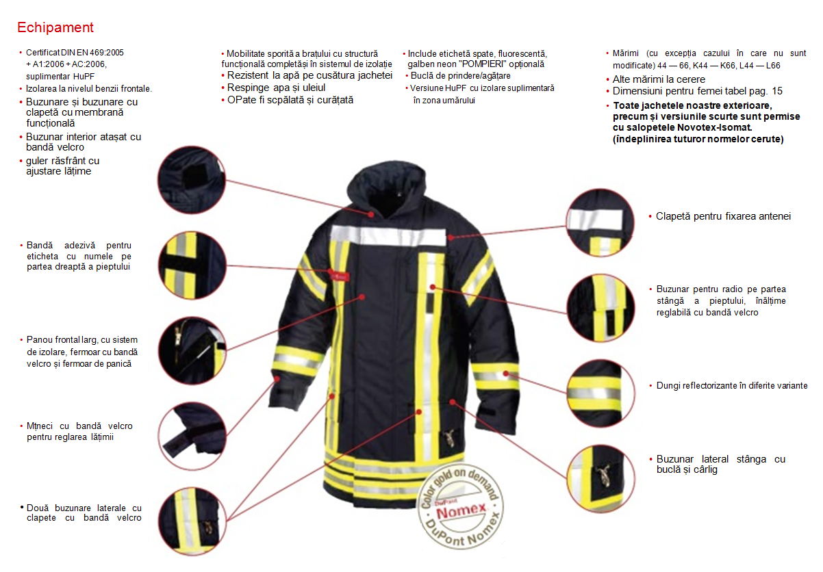 două buzunare pe partea superioară cu buclă și clape a căror închidere se face cu bandă velcro
