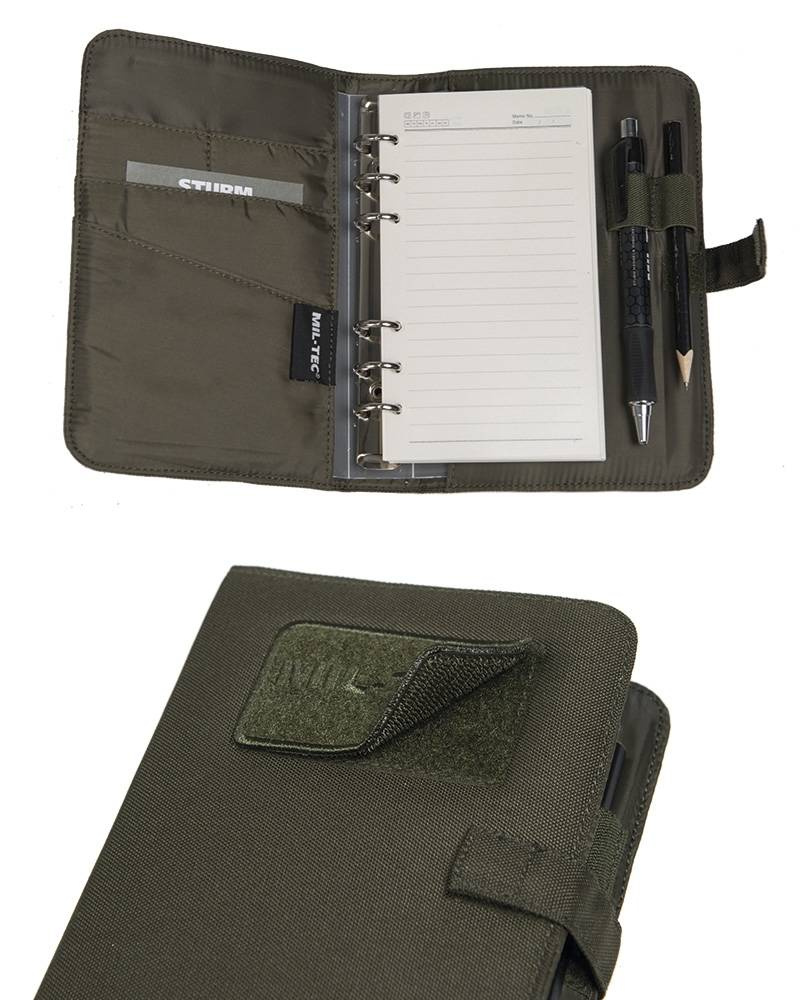 - agendă tactică tapițată cu închidere cu Velcro