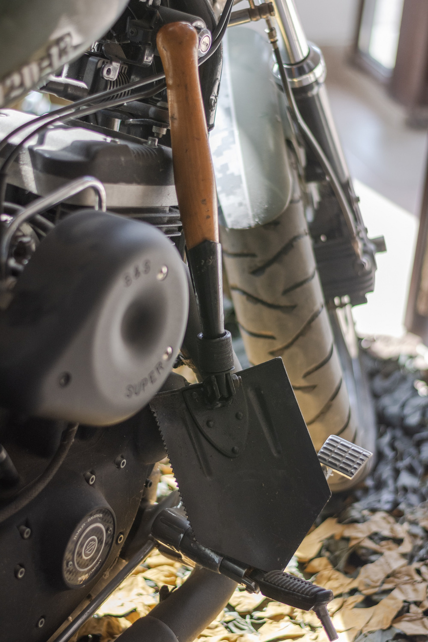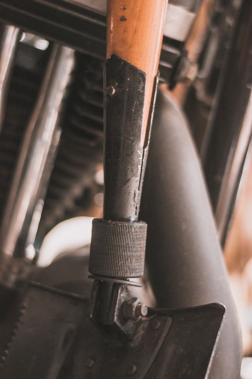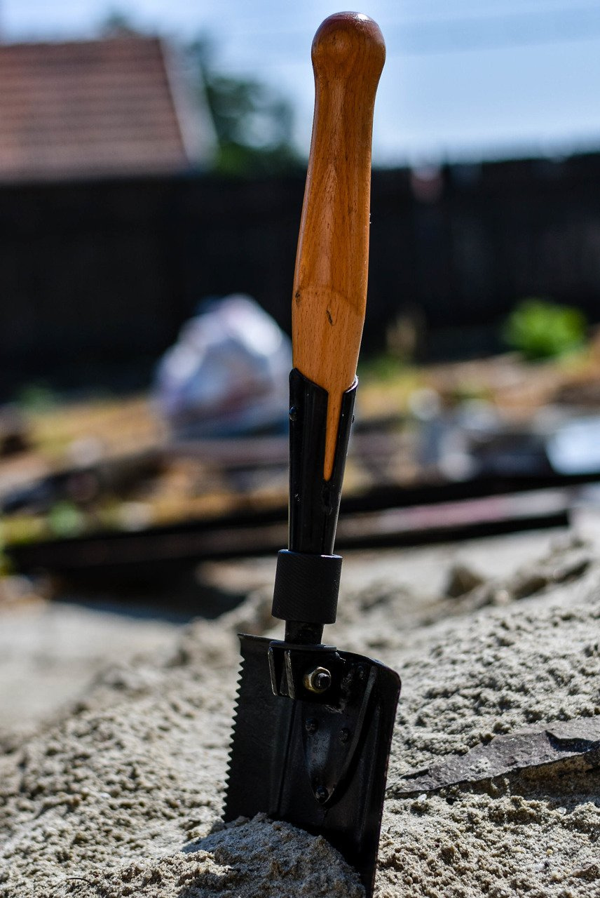 Lopată de campanie pliabilă, originală, provenită din stocurile vechi ale Armate Populare Române, fostă componentă a alianței militare Pactul de la Varșovia. Acest model este foarte asemănător cu cel utilizat de armata est-germană (NVA), asemănarea fiind probabil intenționată.