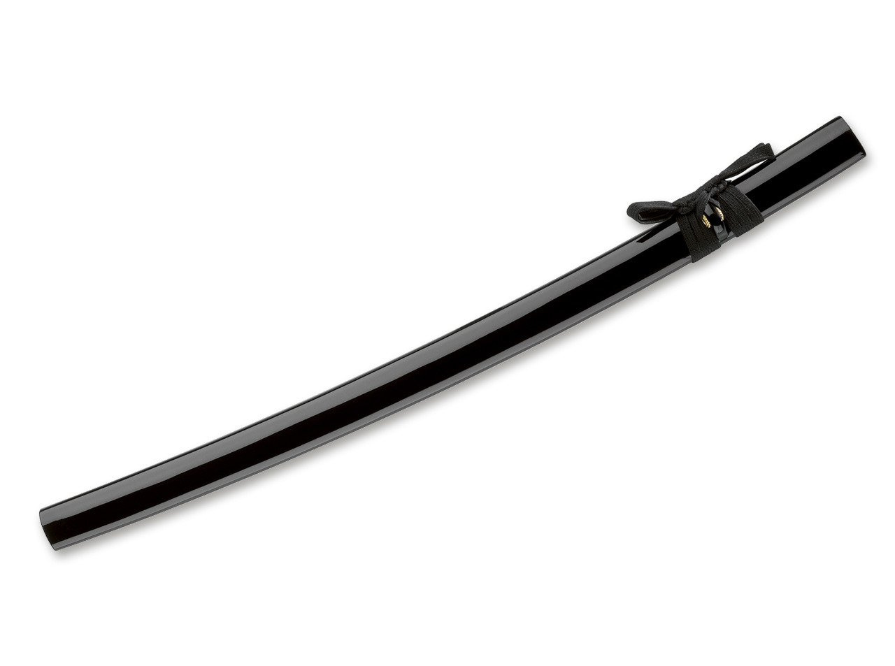 Această sabie de înaltă calitate vă va impresiona cu siguranță la prima vedere! Lama lungă de 71 cm, realizată din 200 de straturi de Damasc forjate manual, mânerul autentic cu subțiri din piele de manta adevărată, precum și învelișul tradițional fac din această bijuterie o adevărată capodoperă. În vremurile de odinioară, statutul social al samurailor putea fi recunoscut după modul de lucru al sabiei. Tsuba este decorată cu motive japoneze și prezintă o ușoară finisare antică. Saya discretă din lemn a fost acoperită cu un lac negru strălucitor. Include un kit de întreținere a sabiei și o husă autentică.