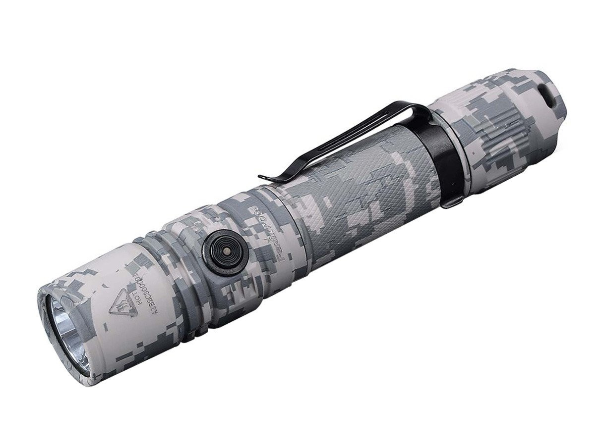 În comparație cu modelul anterior, PD35 V2.0 prezintă câteva îmbunătățiri. Nivelul maxim de iluminare a crescut la 1000 de lumeni. La comutatorul lateral a fost adăugat un comutator din oțel inoxidabil pentru selectarea modurilor, oferind o imagine de ansamblu rapidă a încărcăturii rămase a acumulatorului opțional reîncărcabil atunci când este pornit. 5 niveluri de lumină (1000/350/150/50/3 lumeni) plus stroboscop. Pornire/oprire și bliț prin intermediul comutatorului din spate, selectarea modurilor prin intermediul comutatorului lateral. Carcasă imprimată cu camuflaj Digital, rezistentă la apă și praf conform IP68. Inclusă: 2 baterii (CR123), husă, clemă, garnituri de schimb, capac de schimb pentru întrerupător și șnur.