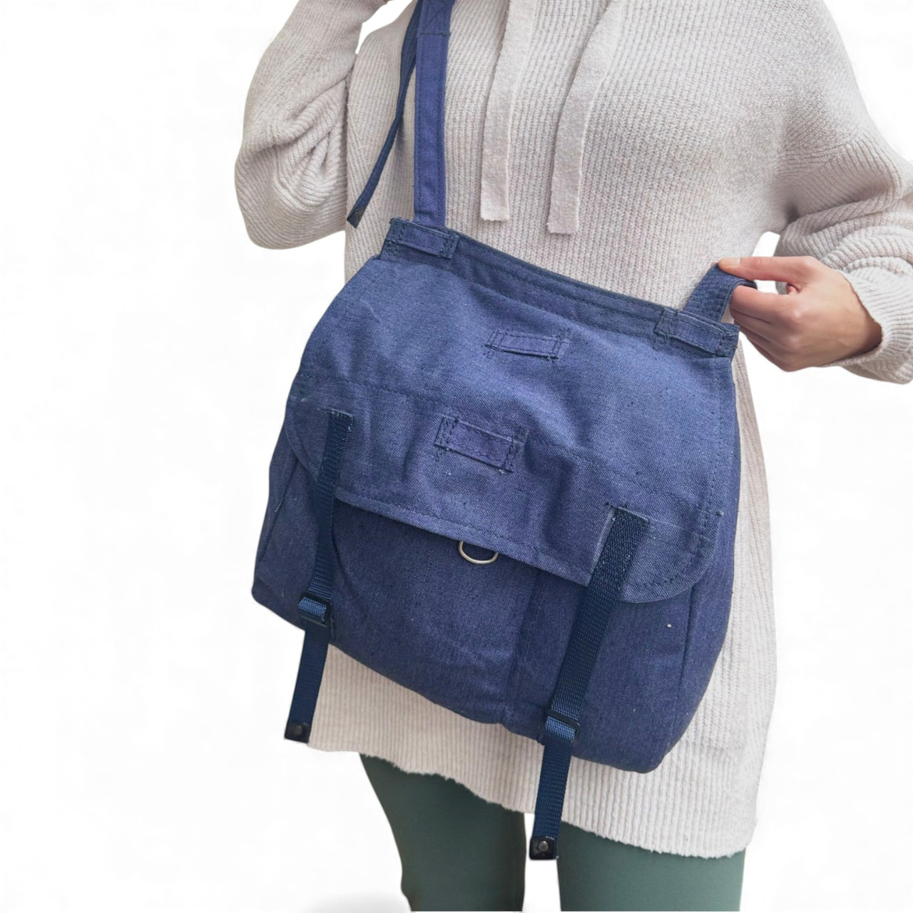 Sac militar de merinde albastru, post-WWII, Surplus Armata Romana - Uzat