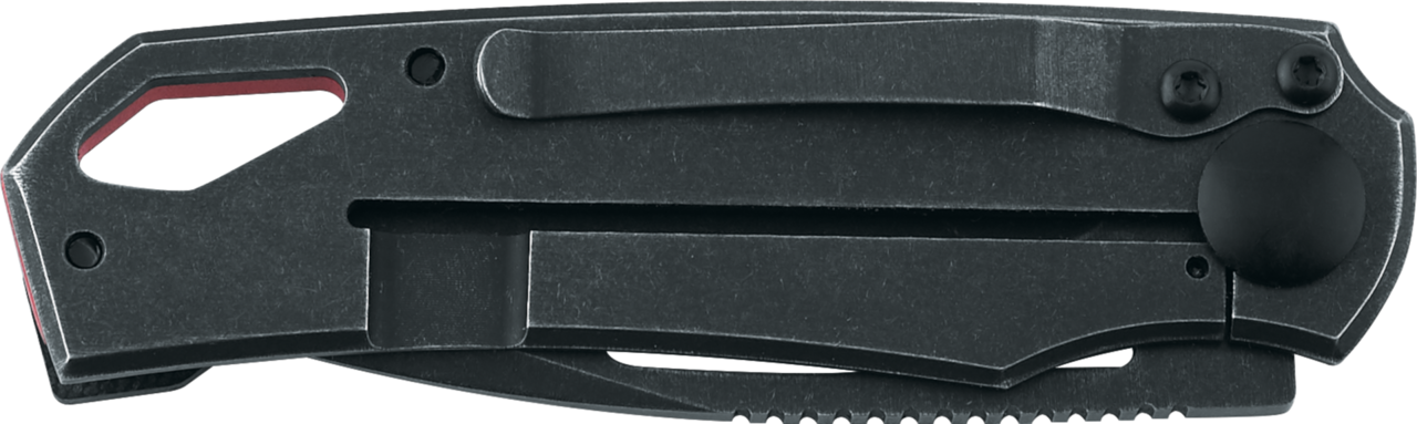 - Mâner: G10 negru + inserție de aluminiu roșu
