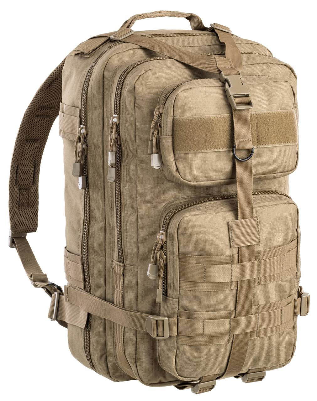 Rucsacul tactic este alcătuit din două buzunare principale și două mai mici, în interiorul cărora sunt inserate compartimente diferite și confortabile pentru tinerea documentelor și diverselor accesorii.