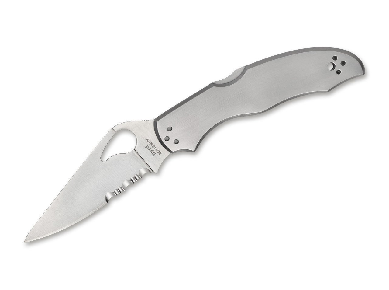 Seria de cuțite Byrd de la Spyderco, de buget, își mărește tot timpul baza de fani și este în continuă extindere. Byrd oferă materiale de înaltă calitate și manoperă excelentă la un preț foarte impresionant. Combinația Harrier 2 este un puști printre cuțitele EDC. Designul amintește de cuțitele de buzunar „old-school” Spyderco, iar combinația Harrier 2 este plăcută mulțimii cu lama sa 8Cr13Mov, care oferă o bună reținere a marginilor, care se desfășoară perfect datorită deschiderii generoase a degetului mare. Caracteristica sa specială este zimțarea parțială a lamei. Mecanismul de eliberare a blocării din spate readuce lama în siguranță și sunet în poziția sa în mânerul din oțel inoxidabil de formă ergonomică. Practic: clemă reversibilă în patru poziții pentru atașarea buzunarului.