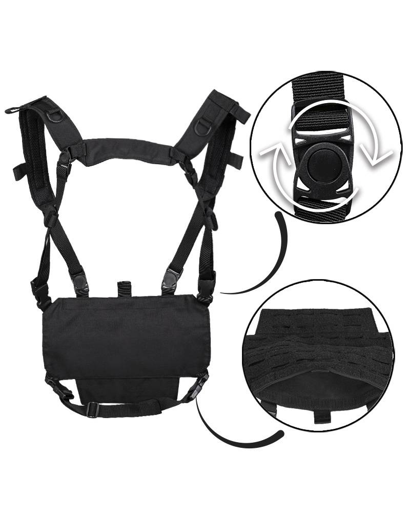 • Ham tactic de înaltă calitate, de la producătorul german Mil-tec®. Hamul este conceput pentru protecția pieptului, foarte ușor și flexibil, cu suprafață lasercut cu Velcro, cu mai multe pouch-uri și curele detașabile.