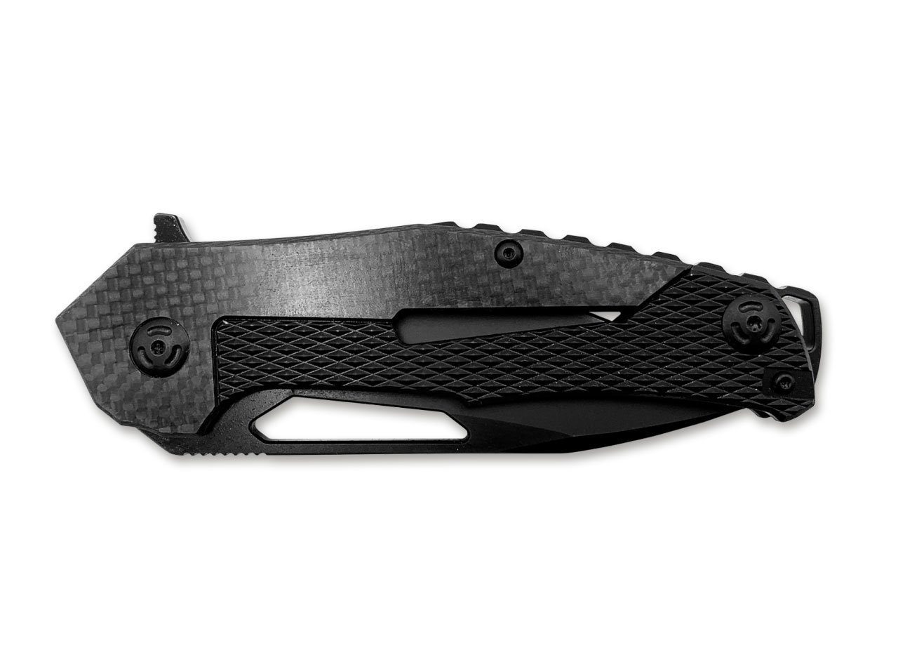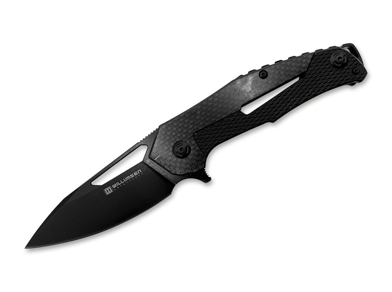 Willumsen Chibs Midnight este pregătit pentru următoarea aventură. Designul său elegant și tactic este perfect pentru tăierea materialelor aspre, iar mânerul său oglindit conferă cuțitului aspectul său unic. Lama neagră de la D2 se deschide cu un flipper și se blochează cu blocarea sigură a cadrului. Mânerul din titan și fibră de carbon este parțial texturat și, prin urmare, este sigur în mână. Cu orificiu pentru șnur și clemă (tip-up / r).