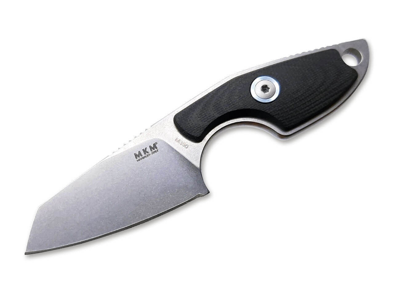 MKM Mikro 2 CF este mic, dar frumos. Cuțitul proiectat de Jesper Voxnaes are o lamă sheepfoot realizată din Böhler M390 de înaltă rezistență. Mânerul antiderapant din fibră de carbon se află în mână, chiar și în timpul lucrărilor dificile de tăiere. Cu teacă și curea din piele de înaltă calitate.