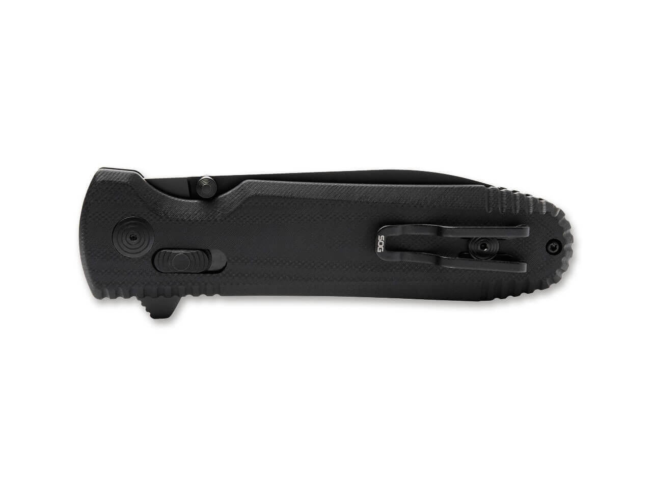 Pentagon XR de la SOG funcționează cu un profil redus. Cu lama sa neagră din CPM-S-35VN rezistent și mânerul din G10 antiderapant, acest cuțit de buzunar stăpânește misiunile ascunse ale vieții de zi cu zi, fără prea multe agitații. Cu un mecanism de blocare a axului și flipper, SOG Pentagon XR este gata și așteaptă următoarea misiune.