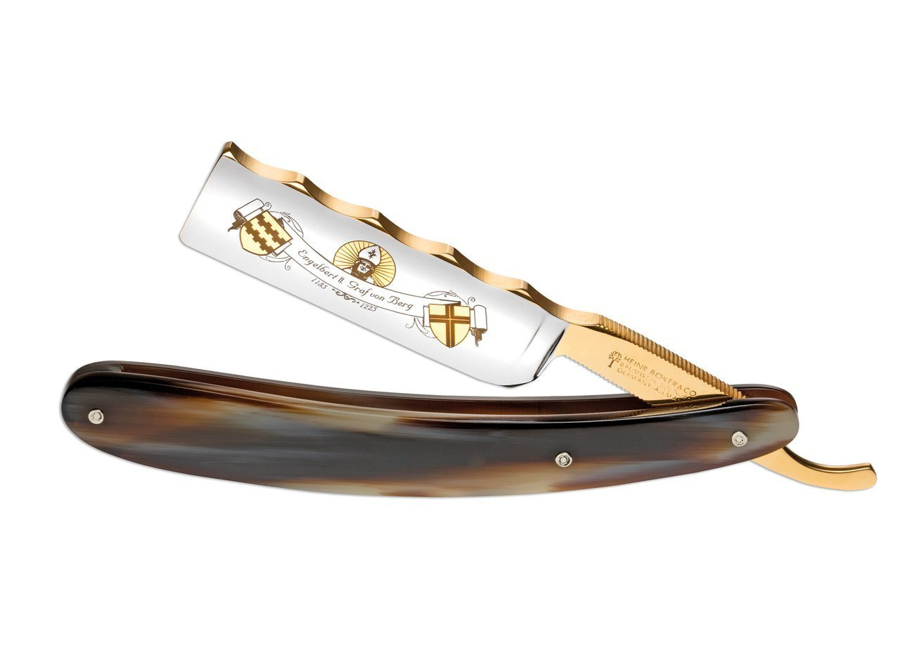 Ultimul conte von Berg, Engelbert al II-lea, a fost numit și Engelbert I., arhiepiscop de Köln. Când a fost ucis, Berg s-a dus la Casa Limburg. Acest splendid aparat de ras drept de 7/8 inch îl arată pe Engelbert ca arhiepiscop de Köln. Capul gradat al acestei lame (măcinat până când scoate sunetul potrivit) este fabricat din oțel de ras Solingen Straight Razor și lama curbată din spate, în combinație cu un mâner, demonstrează eleganța și calitatea sa unică. Include certificat de autenticitate și afișaj de prezentare rafinat cu număr de serie individual.