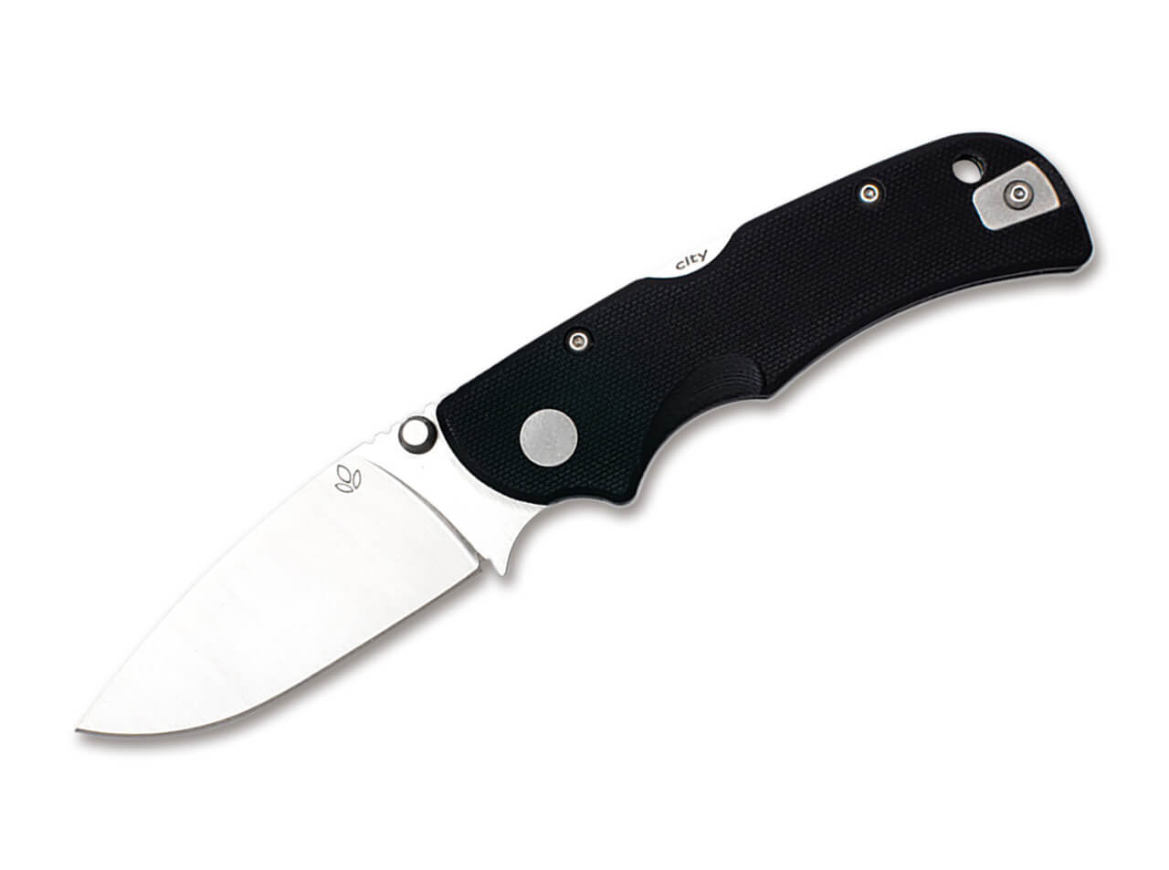 Manly City CPM-S90V Black este un cuțit la îndemână de zi cu zi cu câteva atracții interesante. Lama din CPM-S90V care ține marginea este emblema cuțitului EDC și este controlată de un știft. Cu un blocaj din spate, lama dispare în mânerul antiderapant G10 și se aruncă în viața de noapte.