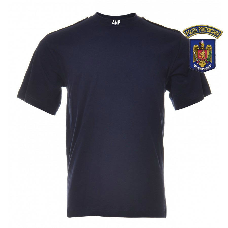 • Tricou ANP Politia Penitenciara albastru inchis cu epoleti si inscriptie la baza gatului