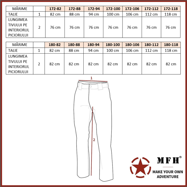 Pantaloni de teren de înaltă calitate de la producătorul german MFH, ideali pentru utilizarea zilnică, precum și pentru toate activitățile în aer liber.