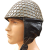 Cască de parașutist, surplus militar Armata Română, realizată după modelul M73 de infanterie, cu căptușeală, tapițată, cu plasă în partea superioară și protecții pentru gât și urechi.