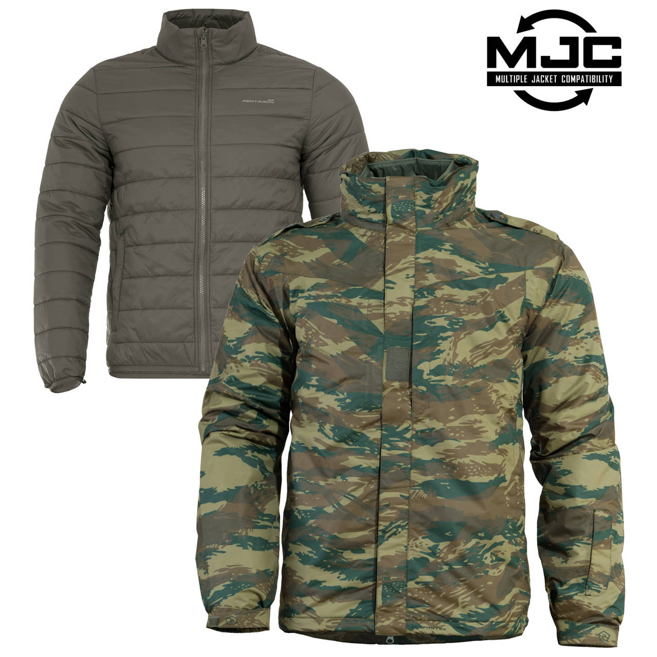 - sistem M.J.C. - compatibilitate cu mai multe jachete; poate accepta căptușeală izolatoare care este compatibilă cu sistemul MJC (precum Nucleus)