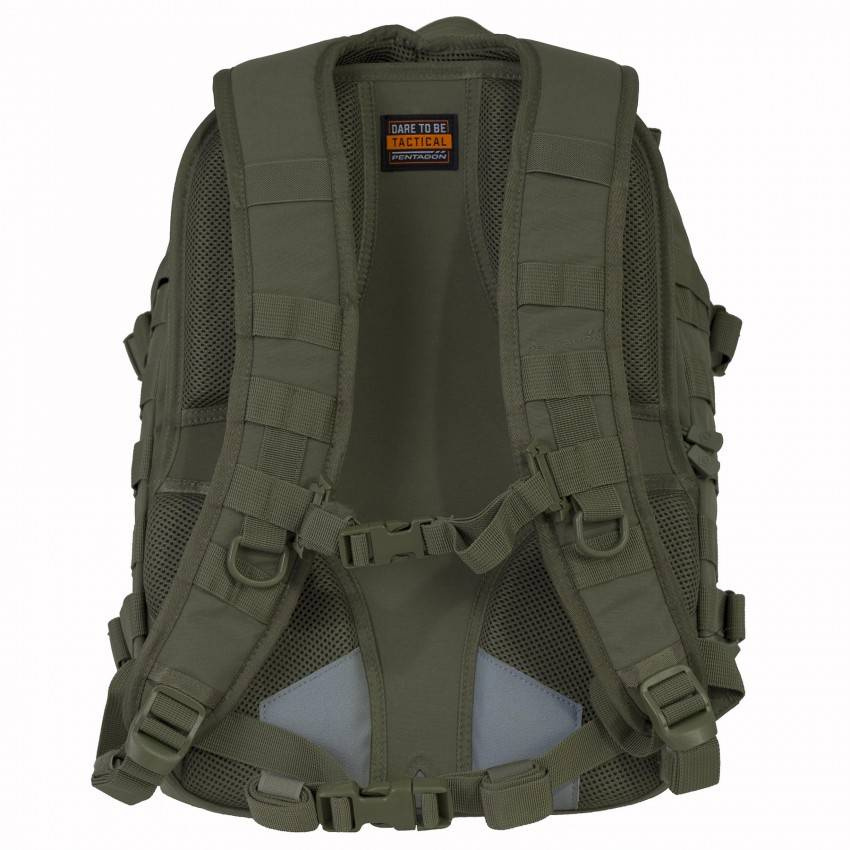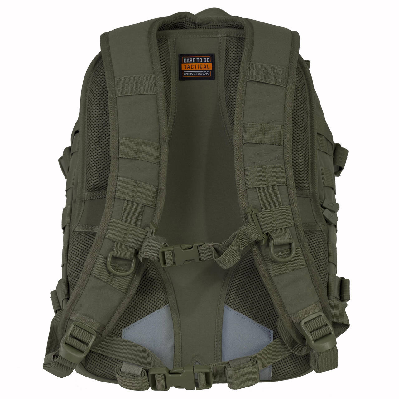 Partea din spate a rucsacului este căptușită cu plasă 3D, patch-uri antiderapante și o placă de rigidă detașabilă pentru susținerea spatelui.