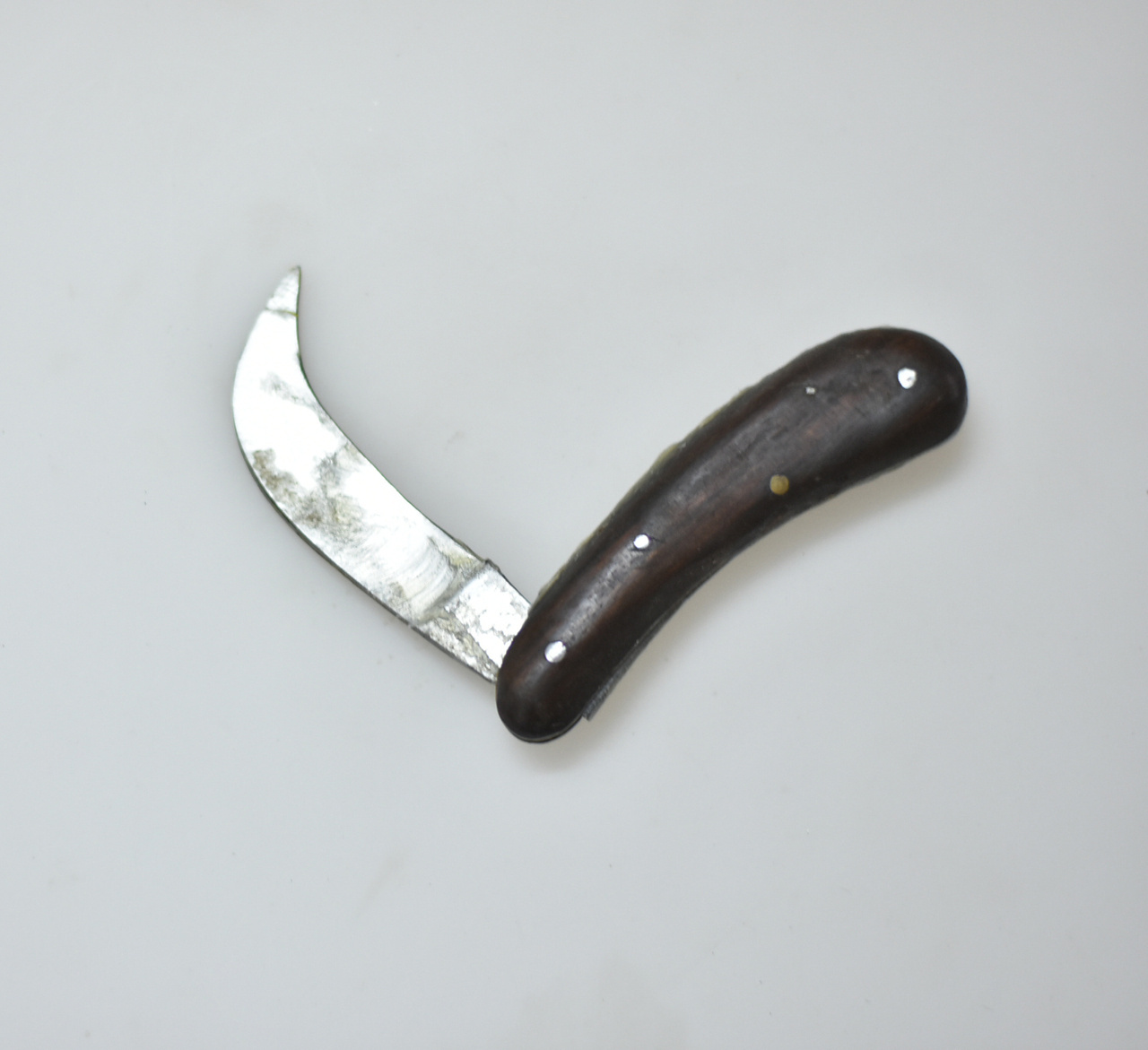 Acest cuțit pentru altoit tip Cosor este un surplus militar original din stocurile Armatei Române. Foarte elegant și totodată practic și rezistent, cuțitul are un mâner frumos din lemn și o lamă de oțel foarte ascuțită. Forma curbată a lamei permite o tăiere curată și eficientă - trebuie doar să prindeți tulpina sau ramura subțire și să trageți lama spre dumneavoastră.