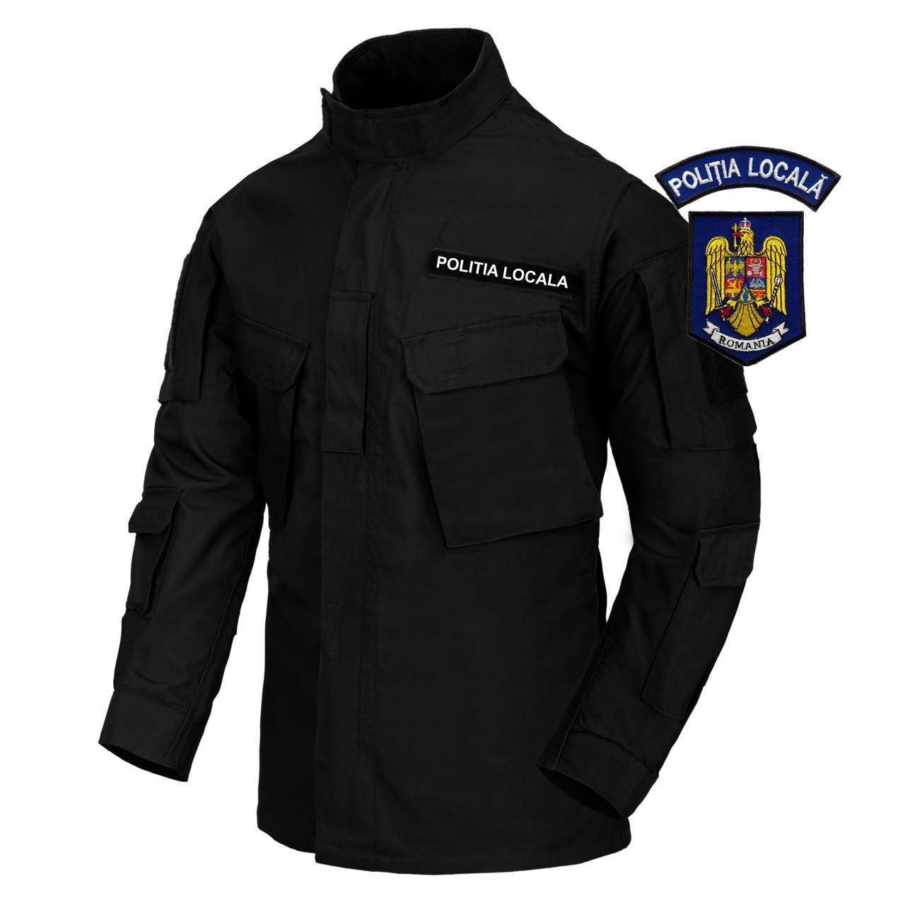 Această ținută tactică de intervenție pentru Poliția Locală este compusă din cămașă și pantaloni cu o calitate înaltă de la producătorul Helikon-Tex®, este o uniformă de serviciu ideală, fiind rezistentă, durabilă și versatilă, personalizată cu patch-uri Velcro "Poliția Locală" și embleme.