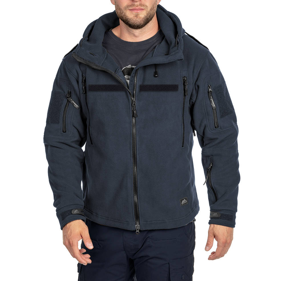 Jacheta Fleece Patriot este cea mai avansată dintre jachetele fleece din gama Helikon Tex®. Este concepută pentru utilizare tactică în condiții meteo extreme. Jacheta dispune de o glugă reglabilă, cu vizieră mică pentru protecție suplimentară, precum și de un set de buzunare pentru accesoriile tactice esențiale. Buzunarele de la piept au ochiuri de cablare și organizatori de dispozitive mici. Trei buzunare externe în zonele ușor accesibile - pe ambele mâneci, permit depozitarea suplimentară. Coatele sunt ranforsate pentru o rezistență suplimentară la uzură și rupere. Jacheta poate fi ajustată individual prin manșete reglabile cu Velcro, precum și cu ajutorul cordoanelor elastice din glugă și din partea de jos a jachetei. Jacheta Patriot este un articol de îmbrăcăminte indispensabil, versatil, durabil, cu o calitate deosebită, ideal pentru climatele reci.