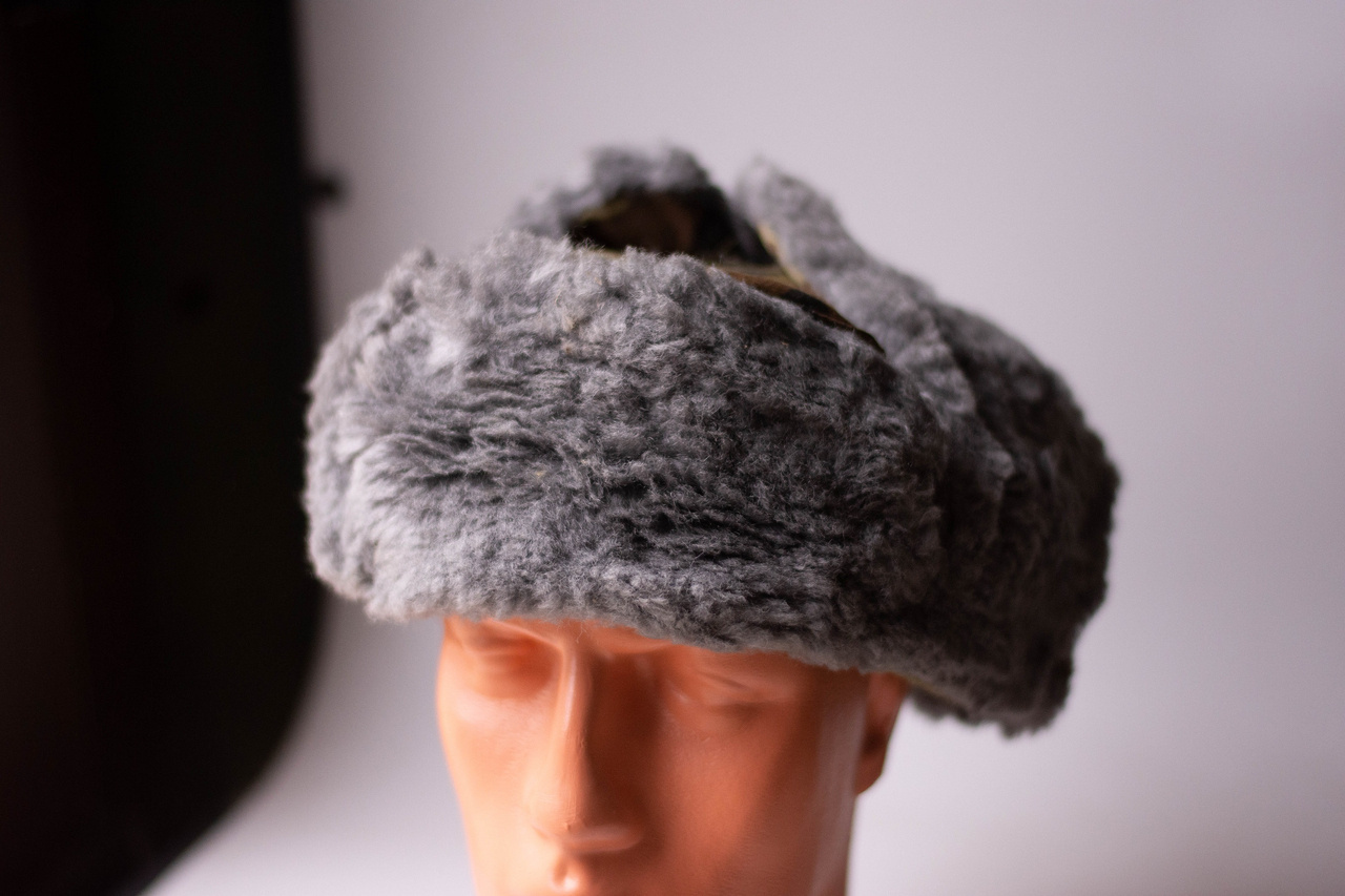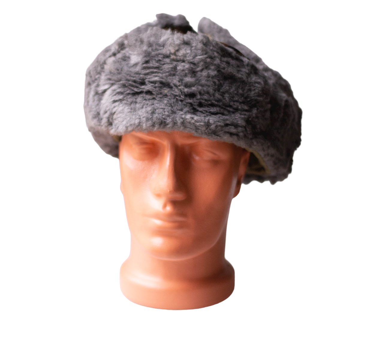 Caciulă de blană, cu margine, culoare gri/camo. Surplus Militar Românesc.