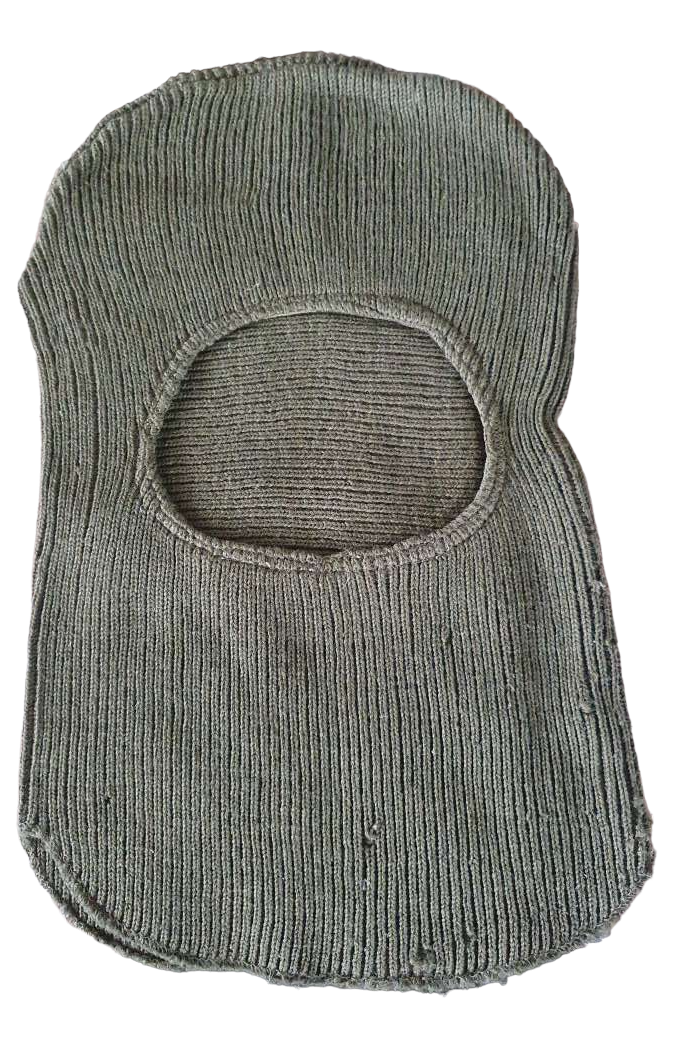 Cagulă moale și călduroasă, din bumbac, ce protejează capul, gâtul și bărbia de frig, provenienta armata romana, de culoare kaki.