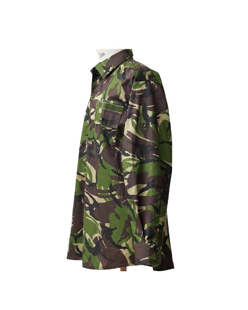 O cămașă de teren rară care folosește camuflajul DPM ripstop lansat de armata română. Camuflajul DPM (Disruptive Pattern Material) este un design de camuflaj ușor de utilizat care folosește modelul woodland folosit de armata britanică și de multe alte armate din întreaga lume. Cel mai utilizat model de camuflaj din lume, dar cu variații de culoare unice pentru a se potrivi cu modelele standard de pădure și deșert ale țării. DPM Camo a fost dezvoltat pentru climatele mai calde și, deși această cămașă este, de asemenea, confecționată din bumbac ușor, folosește ripstop, un material ușor, rezistent la rupere și de lungă durată.
