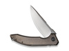 WE Knife Quixotic reprezintă idealistul printre cuțitele EDC. Drept dovadă, Framelock Folder invocă lama din metalurgia pulberilor realizată din CPM-20CV și mânerul de culoarea bronzului din titan, care face ca sarcinile de tăiere de zi cu zi să fie ușoare. Ricșa distinctivă și canelurile de pe spatele lamei conferă accente vizuale, în timp ce clipsul (tip-up/r) și orificiul pentru lănțișor completează funcționalitatea cuțitului.