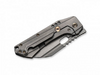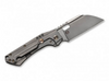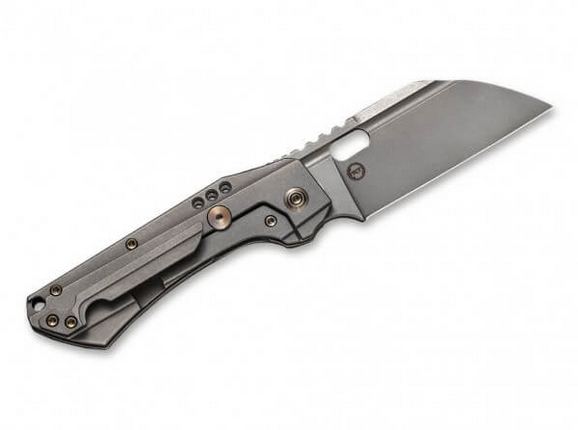 Cuțitul WE Knife Roxi solid, fără îndoială, da lovitura cu o lamă sheep foot realizată din metalurgia pulberilor CPM-S-35VN și un mâner rustic din titan cu aspect stonewashed. Cuțitul Framelock se deschide apasand butonul pentru degetul mare și prezintă câteva elemente decorative, cum ar fi găurile de economisire a greutății în mâner. Cu orificiu pentru curea în formă de evantai și clip (tip-up/r).