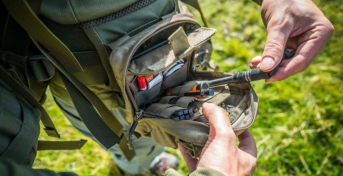 Buzunarul intern se închide cu un patch velcro, are cinci buzunare plate, un buzunar cu cordon elastic și mai multe benzi elastice pentru a glisa obiectele dedesubt, un inel în D și un buzunar intern cu fermoar. Partea exterioară a pouch-ului are un buzunar cu fermoar, două buzunare plate mici, un mâner din paracord și patru benzi elastice. Există două limitatoare de deschidere elastice pentru a împiedica deschiderea completă și pierderea obiectelor. Pouch-ul poate fi purtat la centură sau integrat cu accesorii compatibile cu sistemele MOLLE/PALS.
