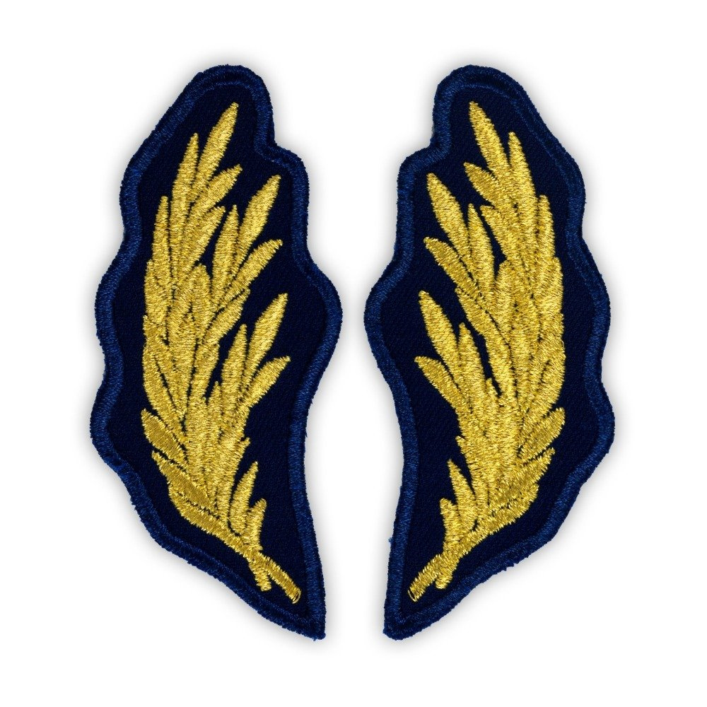 Petlițe pentru Ofițeri penitenciar ANP, cu conturul exterior realizat prin broderie cu fir de culoare albastru indigo/navy. Frunzele sunt brodate cu fir metalic auriu și sunt aplicate pe un suport din tercot termocolant de culoare navy. Această combinație generează un contrast sobru, dar elegant, astfel încât acest produs să se evidențieze pe uniforma militară.