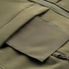 Jacheta de poliție M-TAC Softshell este fabricată dintr-o membrană interioară din poliuretan care protejează împotriva vremii. În interior are un strat subțire de polar. Tăietura dinamică nu limitează mișcările. Gluga ascunsă în guler poate fi ajustată prin buzunare pe piept. Are două panouri de identificare, care pot fi scoase sau ascunse în funcție de situație. În jachetă există un panou gol, datorită căruia este posibil să se brodeze sau să se imprime numele de care operatorul are nevoie. Specialiștii de la marca M-Tac au adăugat un sistem care permite accesarea comodă și rapidă a armei sau a altor obiecte de pe centură. Acest sistem permite obținerea unei arme, a unui electroshoc sau a altor accesorii cu o singură mișcare fluidă, ceea ce afectează semnificativ timpul de reacție în situații periculoase. Proprietățile deosebite ale jachetelor softshell sunt greutatea lor redusă și combinarea a două straturi de îmbrăcăminte într-una singură. Softshell combină stratul exterior (pentru protecție împotriva vântului și vremii) și stratul interior izolator. Suprafața nu numai că respinge umezeala, ci și murdăria. În plus, materialul moale și neted adaugă mai mult confort în timpul purtării. Fermoarul frontal este fabricat de YKK. Fermoarul are o calitate excelentă și își îndeplinește funcția fără probleme vizibile.