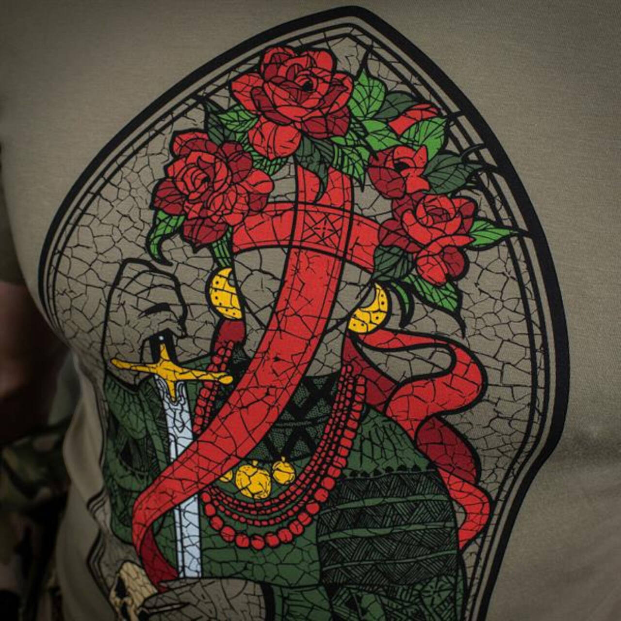 Pe spatele tricoului se află inscripția „M-TAC. Terra Cosaccorum”. Terra Cosaccorum (lat. „Țara cazacilor”) este numele latin al pământului ucrainean, care a fost cândva răspândit în Europa.