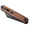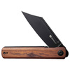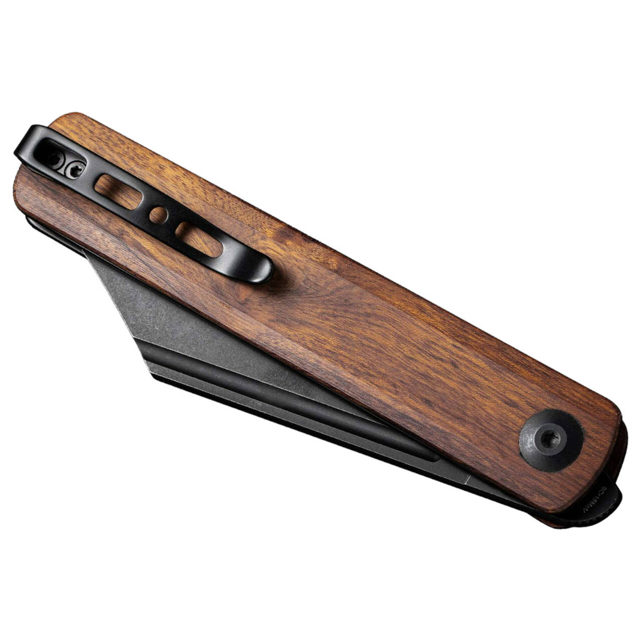 Cu siguranță, atrage toate privirile - SENCUT Bronte atrage atenția ca un cuțit pentru domni nou interpretat. Liniile, de altfel subțiri, sunt întrerupte de lama masivă de tip tanto inversată, realizată din 9Cr18MoV, care permite tăieturi puternice și precise. Cuțitul de buzunar se deschide cu ajutorul discretului flipper frontal, în timp ce liner lock asigură o blocare fiabilă. Finisajul negru acru al lamei formează un contrast armonios cu solzii maro ai mânerului din lemn de guibourtia. Cu clemă reversibilă cu vârful în sus.