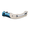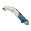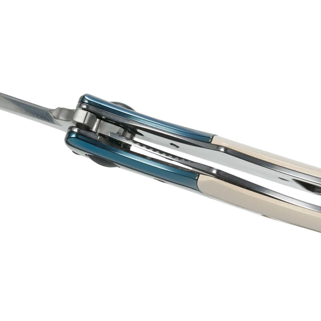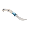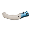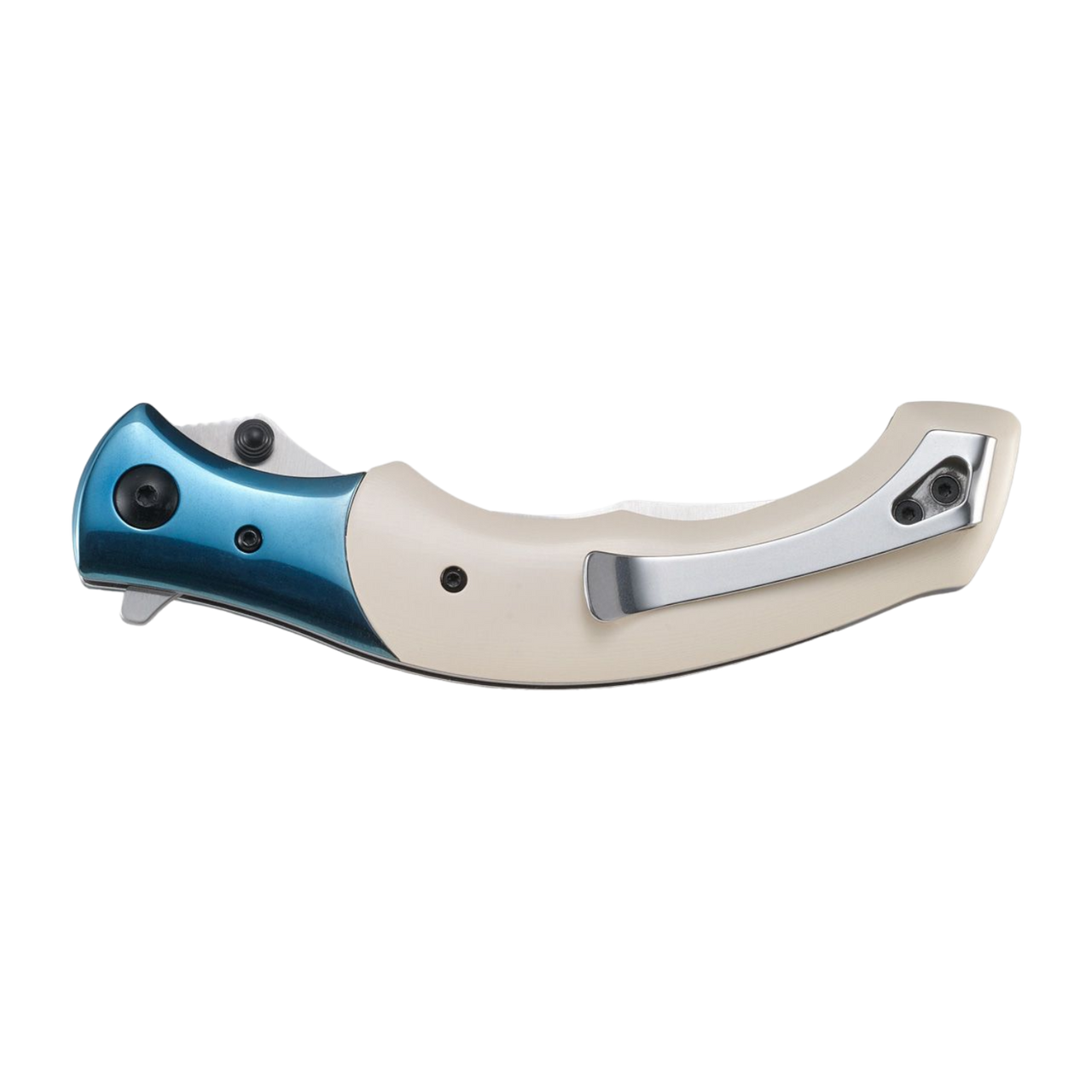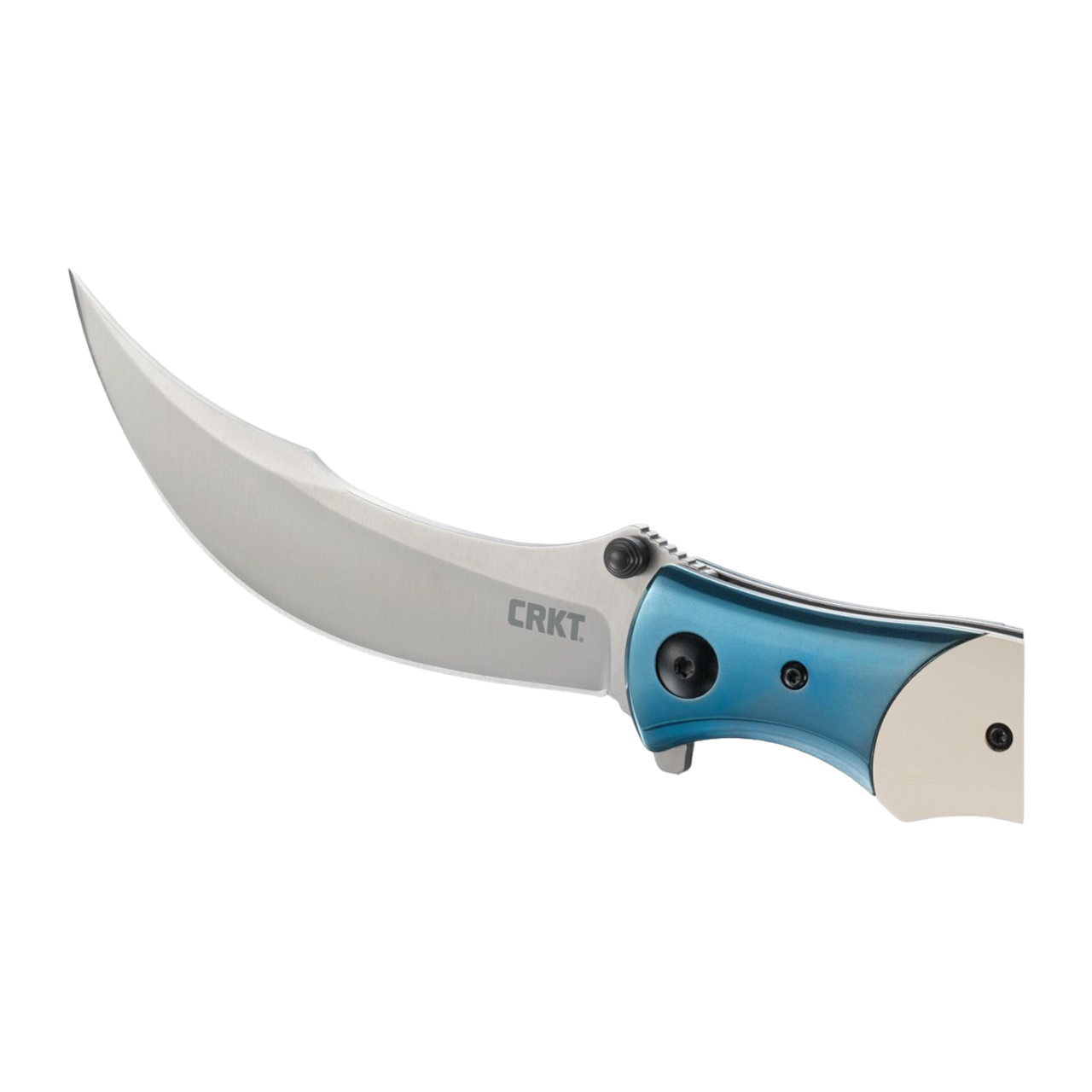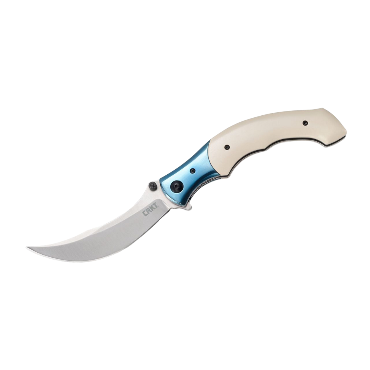 CRKT Ritual preia formele curbate ale unui pumnal persan și reinterpretează complet această formă impunătoare de cuțit. Alan Folts oferă pliantului lama curbată tipică, realizată din Sandvik 12C27, care se deschide cu ajutorul unui arc, fie prin flipper, fie prin butonul degetului mare, și este securizată de liner lock. Mânerul ergonomic asigură o bună prindere și este realizat dintr-un amestec interesant de materiale, cu bolțari din oțel inoxidabil anodizat albastru și solzi din micarta de fildeș. Cu un clip (tip-up/r).