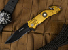 Robustul Magnum Air Force Rescue este un cuțit de salvare fiabil, care combină numeroase funcții practice și poate salva vieți în caz de urgență. Lama reversă tanto, acoperită în negru, realizată din 440A, este echipată cu o muchie parțial zimțată și se deschide cu o clapetă asistată de un arc. Un linerlock robust blochează lama atunci când este deschisă. Mânerul din aluminiu anodizat de culoare aurie măslinie stă întotdeauna bine în mână și are o emblemă detaliată a armatei. Livrat cu un spărgător de sticlă, un tăietor de centură și un clip practic (tip-down/r).
