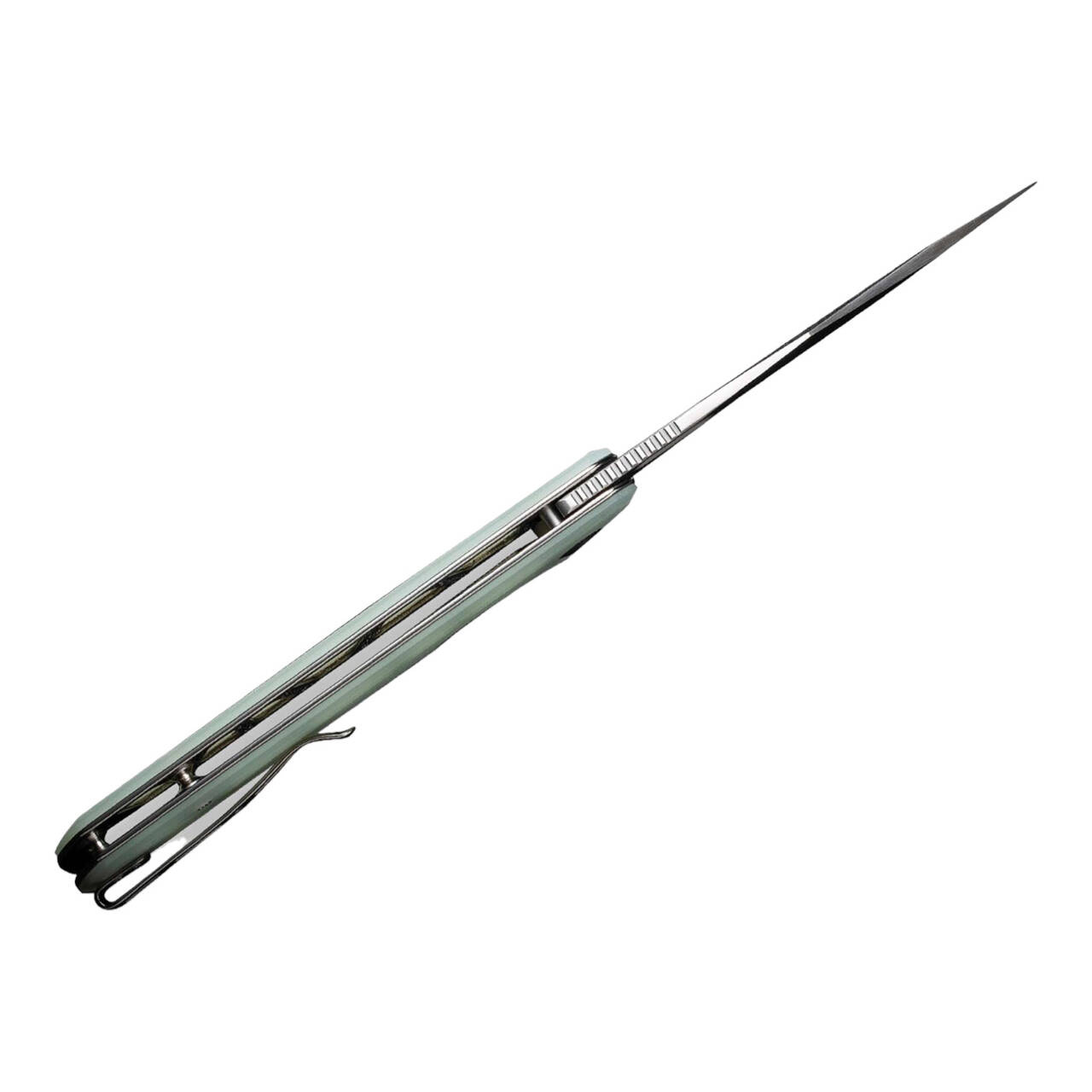 GliderStrike lovește calm în timpul sarcinilor zilnice de tăiere. Lama clip point cu rulmenți cu bile, satinată, fabricată din 9Cr18MoV, face ca tăieturile precise până la cele puternice să fie o briză. Dosarul se deschide cu o deschidere pentru degetul mare, în timp ce încuietoarea de căptușeală preia funcția de blocare. Cântarele texturate ale mânerului realizate din G10 verde jad asigură faptul că cuțitul stă întotdeauna bine în mână. Cu clip reversibil tip-up.