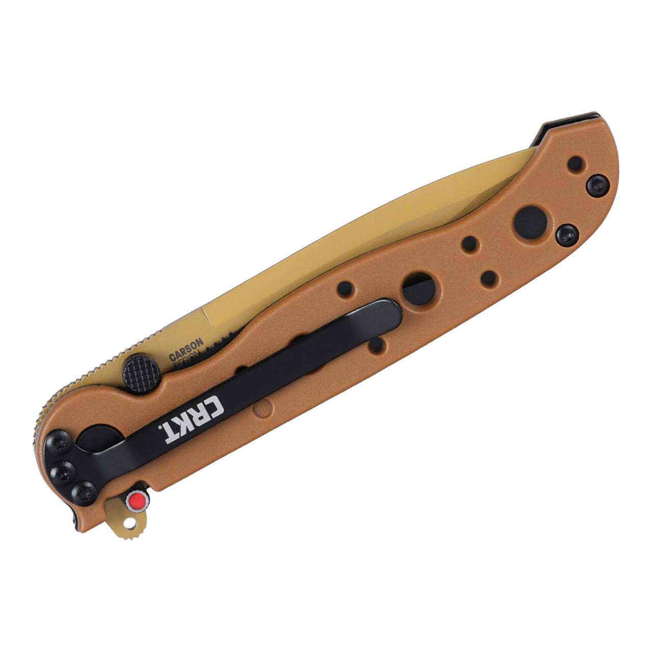 M16-01DZ-ul ușor și subțire nu este deloc voluminos în buzunar și, cu lama sa cu vârf de lance acoperit cu nitrură de titan cu șlefuire plată, este un companion versatil pentru transportul și utilizarea zilnică. Mânerul robust GRN cu adâncituri pentru reducerea greutății stă întotdeauna bine în mână pentru munca solicitantă și este echipat cu un clip tip-down (r). Pentru a securiza lama D2, cuțitul de buzunar tactic maro este echipat cu o blocare a căptușelii și cu siguranța suplimentară AutoLAWKS.