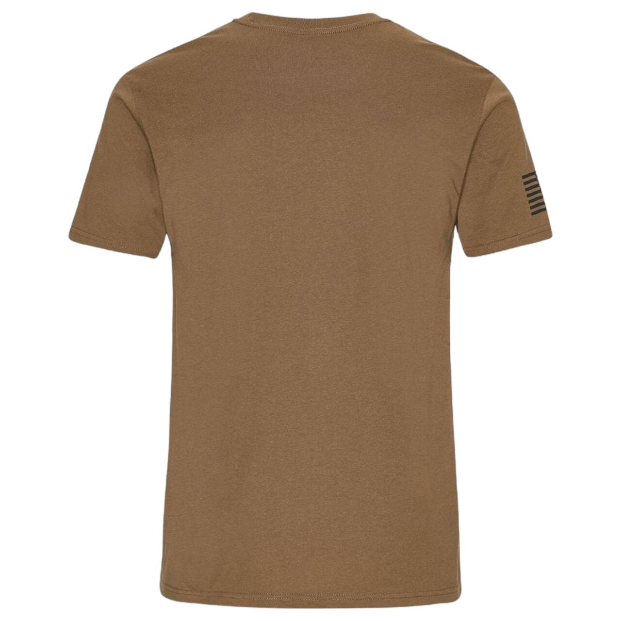 Tricoul este fabricat din 60% bumbac și 40% poliester, ceea ce vă asigură o calitate plăcută, moale, cu confort maximizat. Acesta este imprimat cu un logo mare în contrast Wiley X pe mijlocul pieptului și o etichetă cu steagul WX la tivul tricoului. Pe mâneca dreaptă, modelul are imprimat un steag de asalt al SUA, ceea ce înseamnă că stelele steagului sunt îndreptate înainte, ilustrând mișcarea steagului, așa cum este cazul pe uniformele americane.