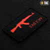 Patch-ul M-Tac AKM Laser Cut - așa-numitele „patch-uri de morală” - pot fi atașate la o șapcă de baseball sau la un rucsac cu ajutorul Velcro-ului.