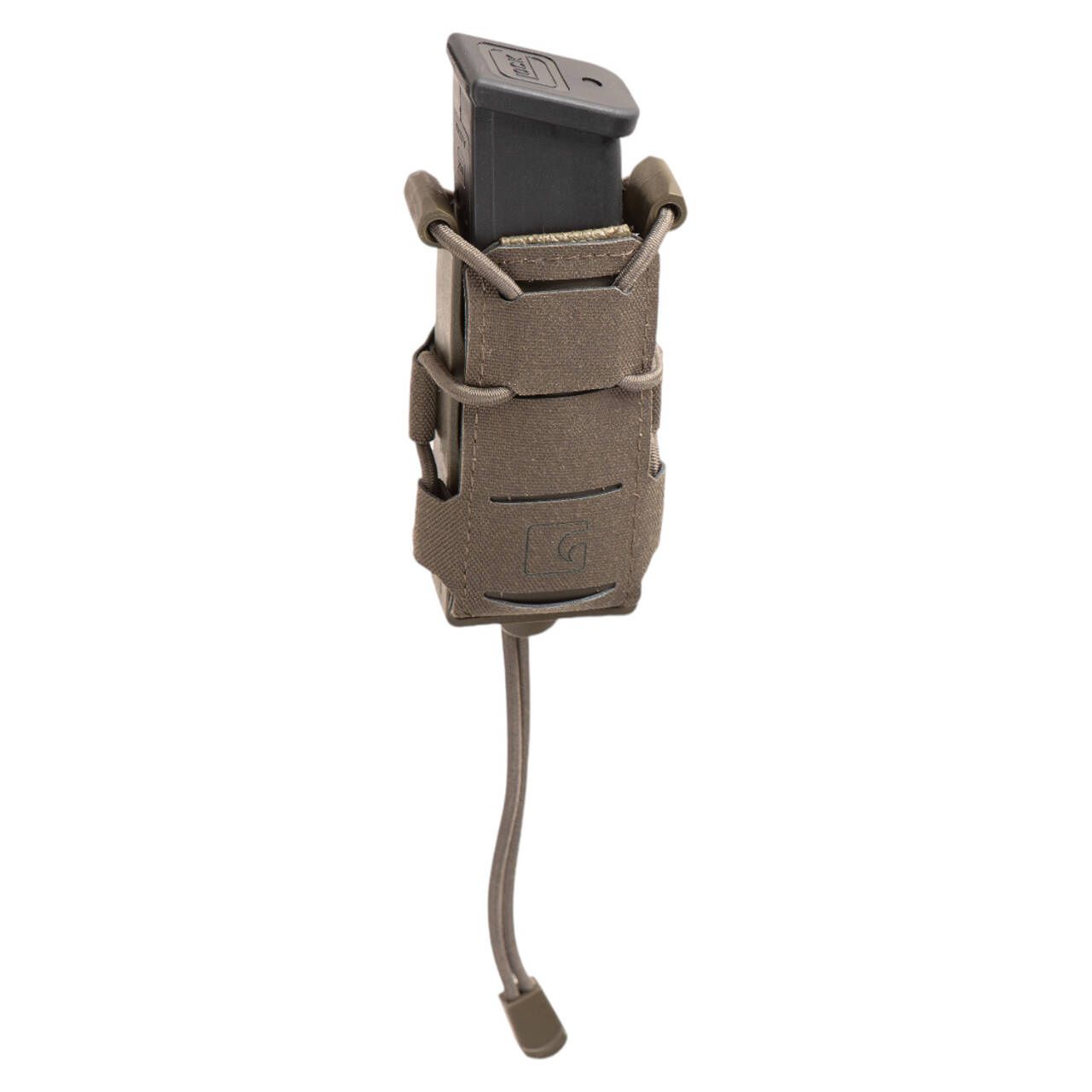 Clawgear Speedpouch este o construcție hibridă care utilizează un cadru de retenție din plastic pentru a ține strâns un singur încărcător de pistol fără a fi nevoie de o filă clasică de tragere de retenție bungee, oferind utilizatorului o extragere rapidă a încărcătorului. Retenția pungii este ușor și rapid de reglat. Decupajele laser MOLLE externe permit stivuirea pungilor.