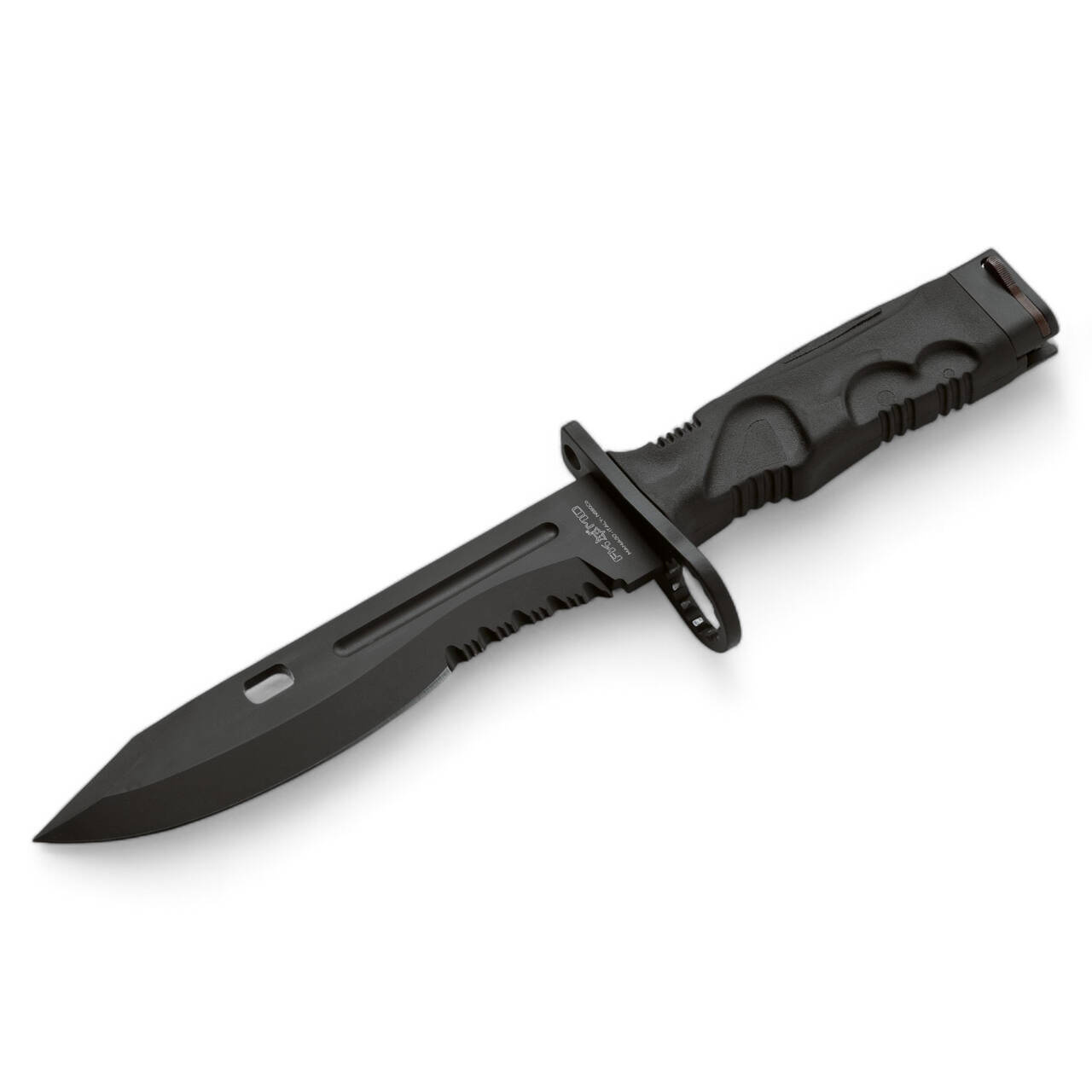 Leonida a fost conceput ca un cuțit militar de operare și supraviețuire cu suport pentru bajonetă. Lama multifuncțională din N690 cu muchie dreaptă și sertizare parțială este instrumentul potrivit pentru toate situațiile de supraviețuire. Teaca sintetică face parte dintr-un sistem Cordura compatibil MOLLE și oferă în plus un tăietor de sârmă și o față de ascuțit acoperită cu diamant. Mânerul Forprene al cuțitului stă confortabil în mână chiar și în condiții umede și garantează o prindere sigură.