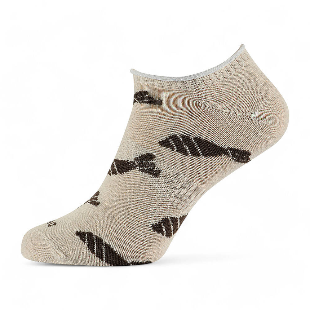 Fabricate din material ușor, respirabil: 85% bumbac, 10% poliester, 5% elastan. Această compoziție textilă asigură o termoreglare optimă, ca urmare a căreia șosetele nu transpiră. Au un design scurtat cu puncte de presiune plasate ergonomic, care asigură o potrivire optimă pe picior și sunt aproape invizibile în pantofi. Modelul Mortar Bombs conferă șosetelor un aspect original, iar forma anatomică asigură o purtare confortabilă în pantof.