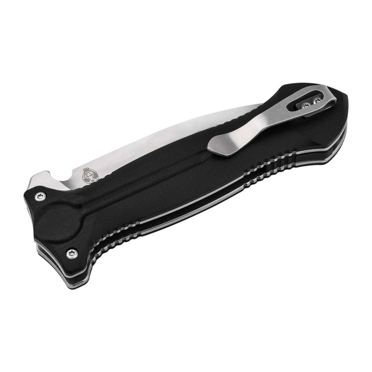 Când este deschisă, lamă dispare complet în mâner pentru un aspect ordonat. Solzii ergonomici ai mânerului din G10 antiderapant au jimpuri suplimentare în partea superioară și inferioară și garantează o prindere sigură, în timp ce adâncitura centrală din mâner reproduce canelura goală a lamei. Linerlock-ul, care blochează lama ferm în poziție, este frumos integrat - astfel încât chiar și cele mai dificile lucrări de tăiere nu au altă alegere. Livrat cu o clemă tip-up (r) și o husă din nailon de înaltă calitate.