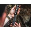 Impresionantul cuțit Pilot Knife de la producătorul american de cuțite Dave Wenger este un cuțit de exterior și de supraviețuire complet maturizat, cu o orientare tactică. Lama masivă D2 are o retenție extrem de ridicată a muchiei, este robustă și are, de asemenea, o acoperire cu pulbere rezistentă la abraziune. Caracterul militar al lamei fixe este subliniat de canelura goală de pe ambele părți și de sawback-ul distinctiv. Mânerul ergonomic cu solzi G10 promite o prindere confortabilă și o prindere sigură în orice situație, iar în această nouă versiune, este echipat cu șuruburi robuste pentru lama full tang. Livrat cu o teacă Kydex personalizată și o clemă de curea.