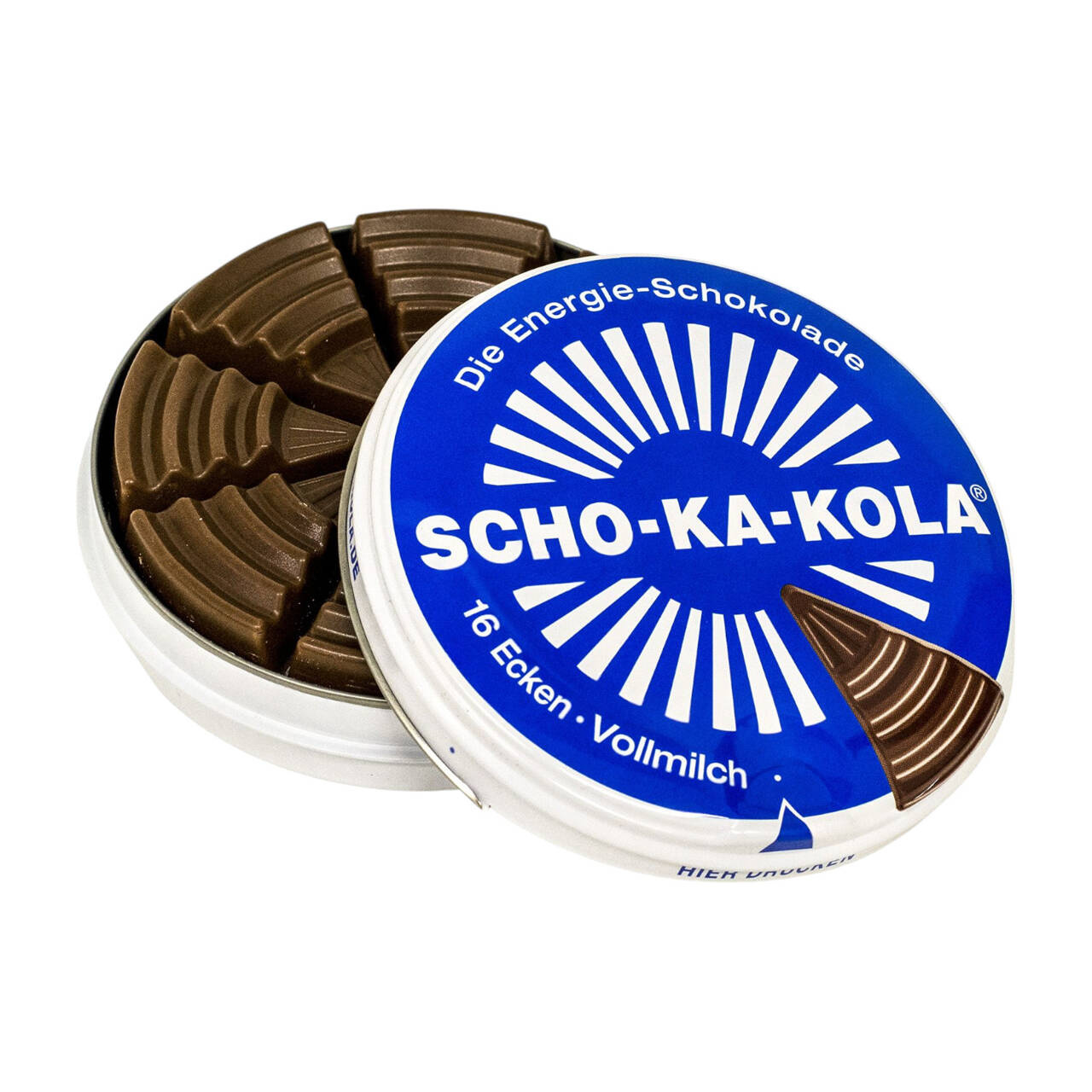 SCHO-KA-KOLA încântă de generații întregi în cutia rotundă izbitoare cu designul atrăgător al razei. Aceasta conține 16 colțuri SCHO-KA-KOLA care se topesc tandru, disponibile în versiunea clasică neagră sau cu aromă de lapte integral. Fie că sunt acidulate sau dulci: ambele varietăți sunt caracterizate de rețeta unică cu cofeină naturală din cacao, nucă de kola și cafea. Nuca kola face din SCHO-KA-KOLA o ciocolată cu cofeină specială. Nuca de kola este sămânța copacului de cola, care se găsește în principal în Africa de Vest și Centrală și conține semnificativ mai multă cofeină decât cafeaua convențională.